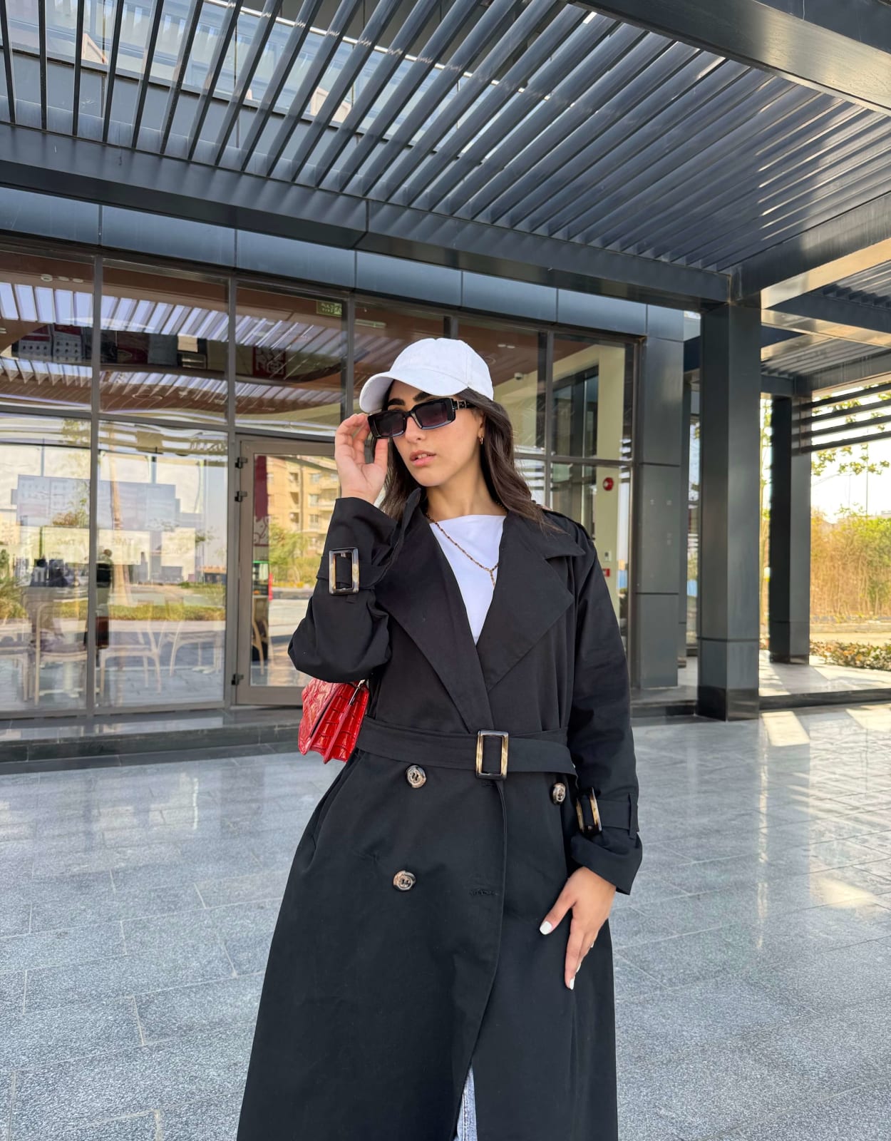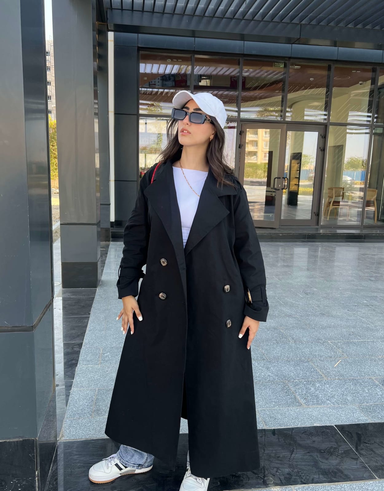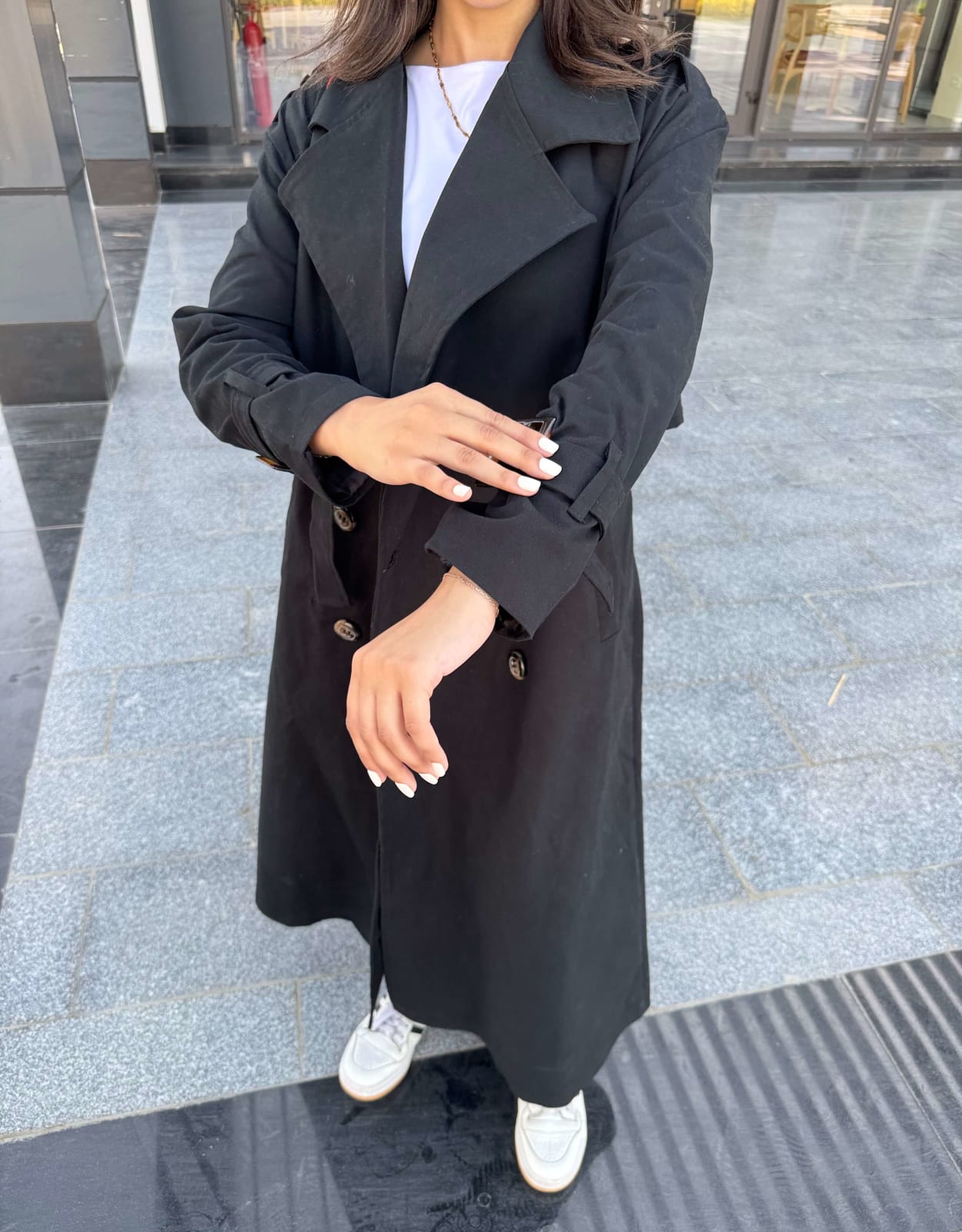 Long trench coat in black added to cart. View Cart →
